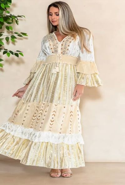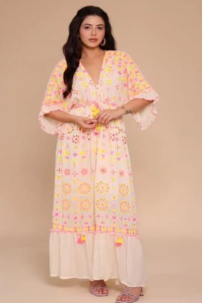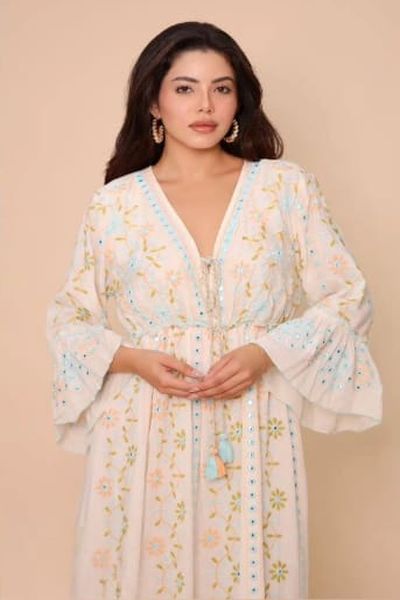 We are a leading Manufacturer, Exporter, and Supplier of high-quality Ladies Cotton Embroidered Full Sleeve A-Line Maxi Dress. This elegant Maxi Dress is crafted from premium Cotton fabric in a beautiful Cream color, featuring a Full-Length design with Full Sleeves. The A-Line silhouette and intricate Embroidery Work add a touch of sophistication. Easy to care for, simply machine wash cold. Designed for a comfortable Regular Fit, this Maxi Dress is perfect for any occasion, offering style and comfort in one chic ensemble.