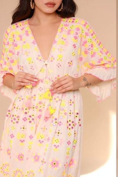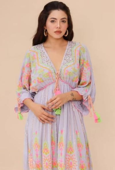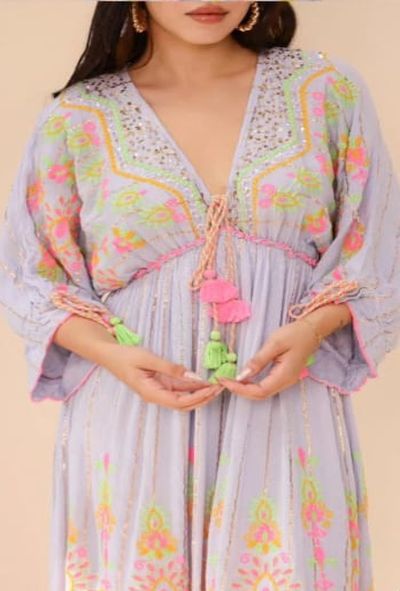 We offer a stunning Handmade Embroidered V Neck Cotton A-Line Maxi Dress that exudes elegance and charm. This full-length maxi dress features a flattering V-neckline and is crafted from high-quality cotton material for ultimate comfort. The A-line silhouette creates a flattering and feminine look, perfect for any occasion. Each dress is meticulously handmade with intricate embroidery, showcasing exquisite craftsmanship. As a leading Manufacturer, Exporter, and Supplier, we take pride in delivering exceptional quality and style in every piece we create.