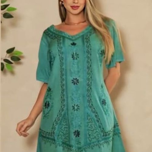 Ladies Light Green Floral Georgette A-Line Short Dress