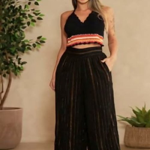 Ladies Black Crochet Halter Neck With Palazzo Co-Ord Set