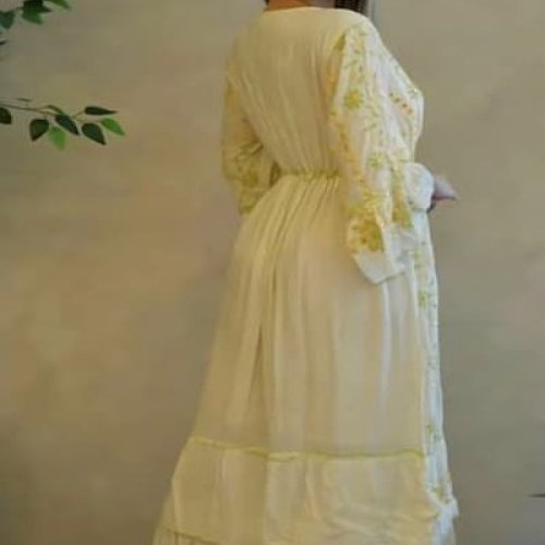 Handmade Embroidered V Neck Cotton A-Line Maxi Dress