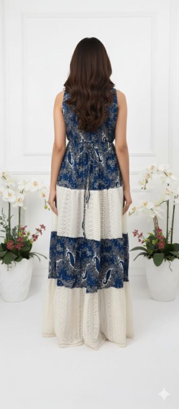 Home › Products › White And Blue Paisley Lace Boho Luxe Gown Long Dress