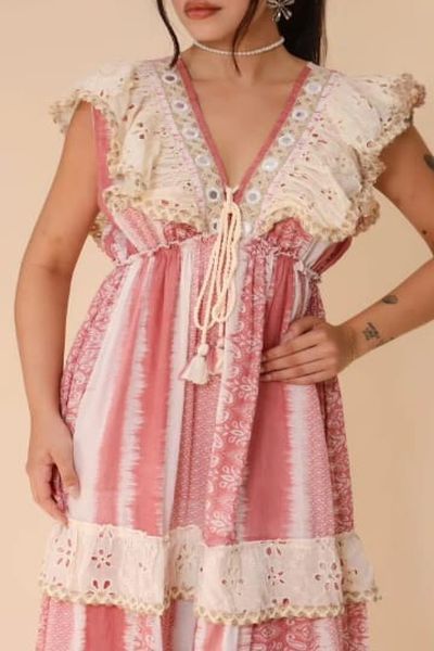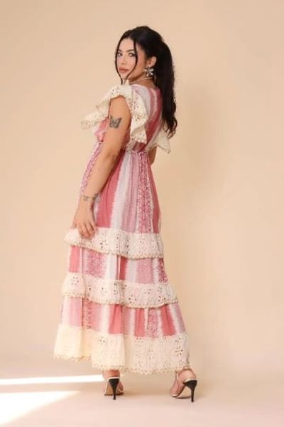 We offer a stylish White and Pink Printed V Neck Cotton Frill A-Line Maxi Dress, perfect for daily wear or casual outings. This maxi dress features a flattering V neck neckline, A-line style, and regular fit. Made from high-quality cotton fabric, it ensures comfort and breathability. The beautiful printed pattern adds a trendy touch to your look. Easy to care for, simply machine wash cold. Ideal for Manufacturer, Exporter, and Supplier businesses looking to provide fashionable and comfortable clothing options to their customers.